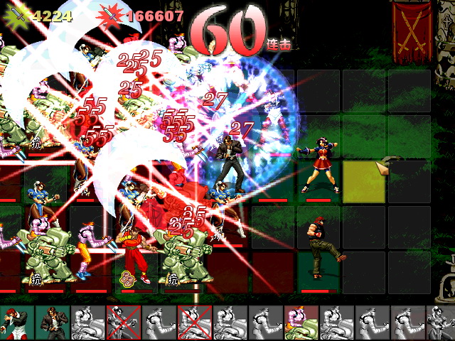相信很多人之前都有玩过这款创意独特的游戏,将常见的爽快街机格斗拳皇中的人物与经典的战棋策略火焰纹章结合到了一起,体验另一种独特的战斗方式。