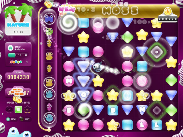 非常有爱的消除游戏,将拼字游戏融入到了消除游戏之中,而且还额外支持玩家自定义单词来获得额外的加分奖励。