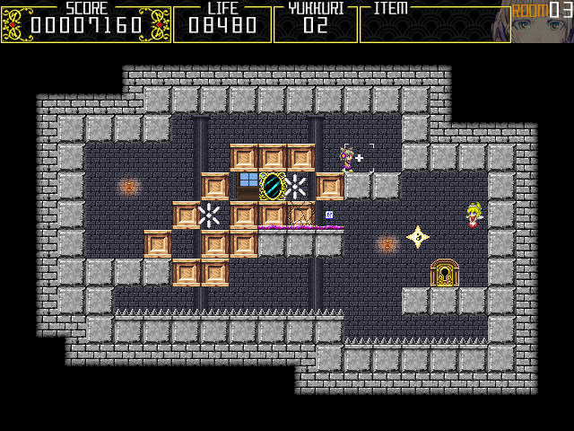 《红魔之键》是日本同人社团GEM在C83上发布的,一款共有50个场景的王道动作解谜游戏。故事的剧情是神子听取了布都的提议,去红魔馆打招呼。最后,神子能否到达红魔馆之主蕾米莉亚那呢?