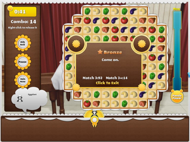 在这个激动人心的三连消除游戏中你将学习烹饪,帮助熊猫创造美味的餐食!遵照熊猫的配料清单,交换和配对三个或者更多的食物,一路解锁新的谜题!渴望挑战?这款超过60关的充满食物乐趣的游戏,一定能让你满意。
