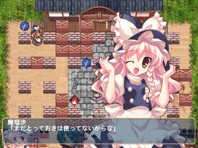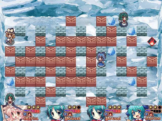 东方系列一直以弹幕而出名,忽然出现这样的休闲游戏,让人有点无所适从的感觉。东方系列的各个角色都加入了到这场炸弹人的战斗中,另外友情提示,此次的AI并不低哦。