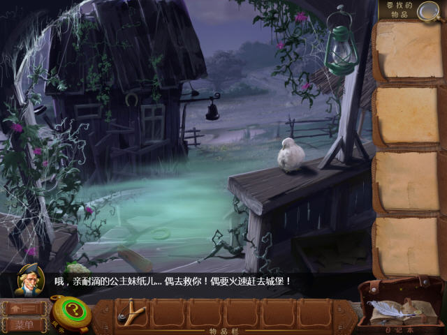 这是一款充满了欢乐的童话故事。故事围绕英雄救美的老套路,但游戏设计天马行空,充满了各种趣味和搞笑的元素,以及离奇古怪的故事,例如骑炮弹飞行、被大鱼吞进肚里又逃了出来、巧做飞天鸭.... 游戏过程没有单词找物品的环节,要根据场景寻找线索,并要自己组装物理连锁装置,完成冒险谜题。游戏全程语音,配音比较精彩,音乐比较有特点。