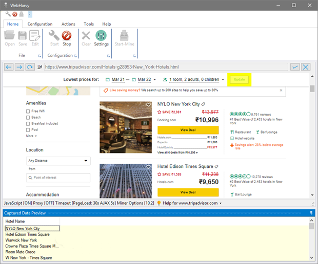 WebHarvy 可以轻松配置为执行诸如单击链接、 选择列表/下拉选项、在字段中输入文本、 滚动页面、 打开弹出窗口等任务。