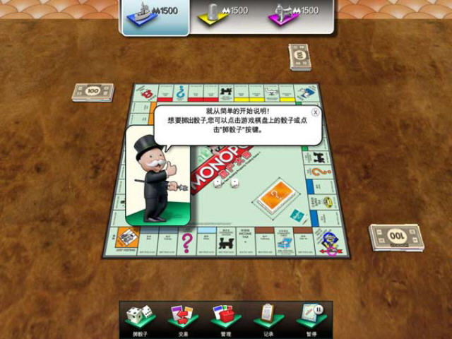 《大富翁2012》有三种难度可供您挑战,一张机遇卡在起点等候你,在努力拔得头筹时候,要记住远离监狱喔。