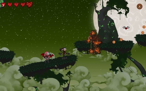 整个游戏共20关,有大约3个关卡有着很独特的视觉风格,其中主要以森林为主,2人协同努
