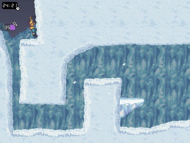 当走在横着的薄冰路上时,需要通过上下(↑↓)来平衡自己。当向下爬时,需要先蹲下(↓),然后按空格,就会附在雪山壁上。