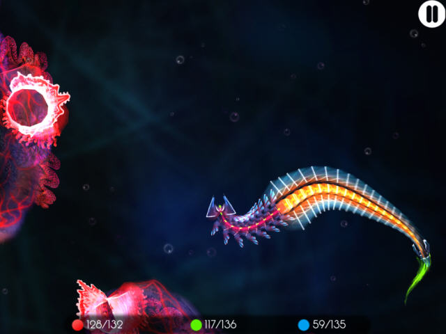 《光影穿梭2:进化》Sparkle 2:EVO是一款画面独特绚丽的现代版"贪吃蛇"游戏。操作十分简单,指引小生物游动的方向,或带领小生物游向光影世界的深处。每个关卡中,指引小生物吃掉红绿蓝三色规定数目的独立微小生物,同时躲避比自己大的生物,过关。此游戏既可作为闯关游戏来竞技,也可作为休闲游戏来调节心情,是一款灵活度较大的复古却又创新的小游。