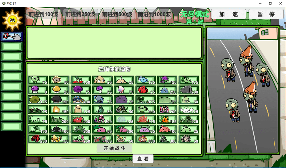 4、然后点击开始战斗,植物和僵尸就会自己对打起来;