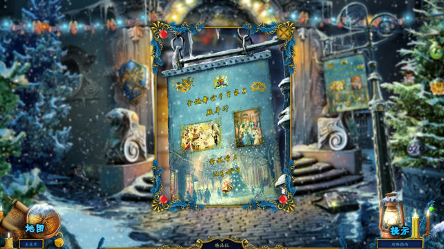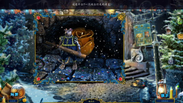 《圣诞故事:胡桃夹子》的场景做的很唯美,飘雪的室外,以及装扮的非常漂亮的室内,都能够很好的吸引玩家的注意。游戏中玩家将会为了促成一对玩具的幸福而努力的寻找着一切线索。