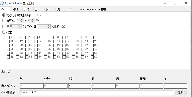 Quartz定时器在使用时,需要Cron表达式,但是人为去写需要对表达式的规则足够了解,但有了该表达式生成器只需要选择对应的“执行”时间就可以快速生成符合你要求的表达式啦。