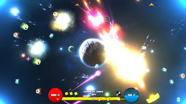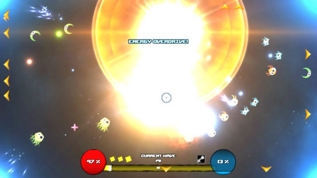 游戏中敌人的数量非常多,所以也算的上是一款弹幕游戏,多多收集游戏中的“+”号,可以帮助你拥有更多的护盾来抵抗敌人的进攻。
