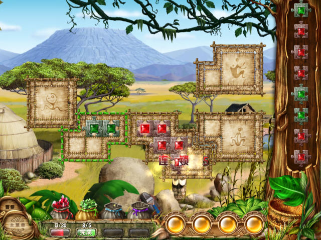 游戏的画面属于经典的卡通画面,需要玩家通过拼图的方式来将一块大图消除,消除所获得的宝石奖励,将用来复原村庄中的诸多建筑,总体来说拼图+消除比较有亮点,可玩性一般。