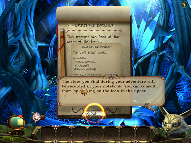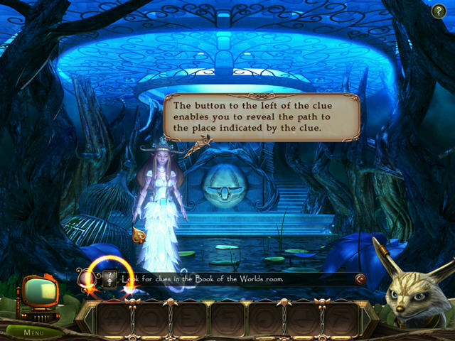 游戏中玩家扮演的女主角在精灵的指引下找寻丢失的世界之书,你需要寻找线索,揭开谜题,从嫌疑犯中指认小偷,帮助维护精灵世界的秩序。游戏的解谜的左下方的一朵小花,会以句子和画面指示两种方式帮助玩家找到线索,这个小提示颇为贴心!