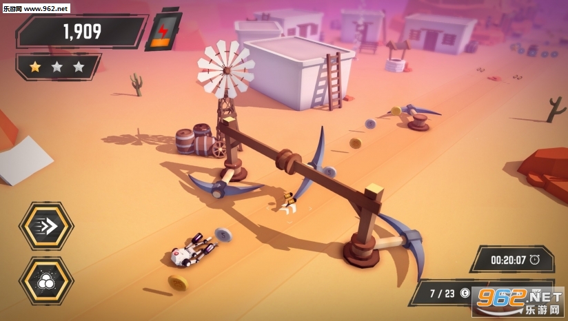 在这种游戏模式中,你必须在电池电量耗尽前到达每个级别的终点线。世界模式带你通过5个不同的世界,每个世界都有自己独特的装置和敌人,试图摧毁你。每个世界的最后一级都是一场大老板的斗争。