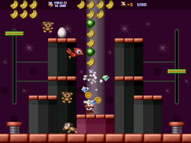 同马里奥一样,这款游戏是采用踩踏的方式杀死敌人。也是同马里奥一样,这是一款可以收集金币的闯关游戏。不同的是这款游戏中玩家能够通过跳入下面的坑来到达屏幕的最高处。游戏整体上是卡通画风,操作也比较简单,比较适合那些小朋友与休闲玩家体验。