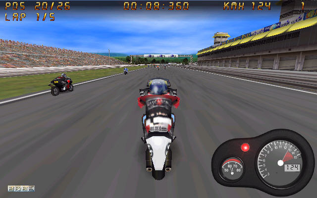 游戏中存在不同的难度水准,支持从业余级到专家级别难度选择。玩家可以选择自己喜欢的摩托车、以及车手,并且允许玩家在测试模式,冠军赛等多种赛车选择,加入了许多的经典赛事。