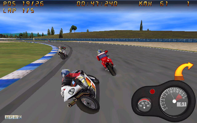 这是一款适应面比较大的摩托赛车游戏,游戏中以现实为基础多样的赛事能够给玩家带来丰富的内容,又能够提升游戏的真实性。虽然这款游戏的画面拿到现在来依旧不值得一提,不过不得不说游戏的在玩法的丰富性上并不逊色于现在的摩托车游戏多少。这是一款中规中矩的摩托车赛车游戏!