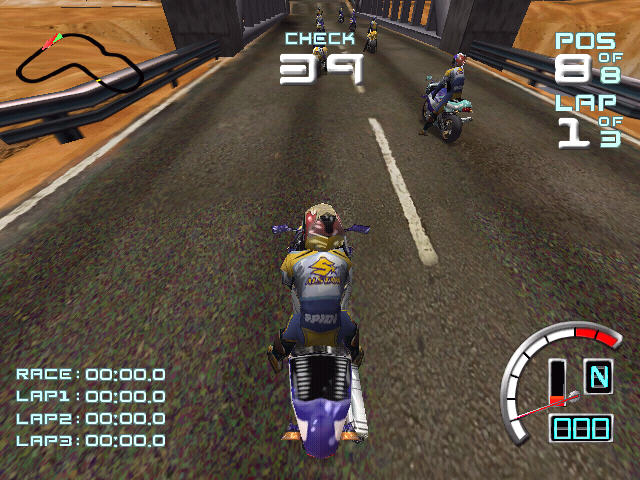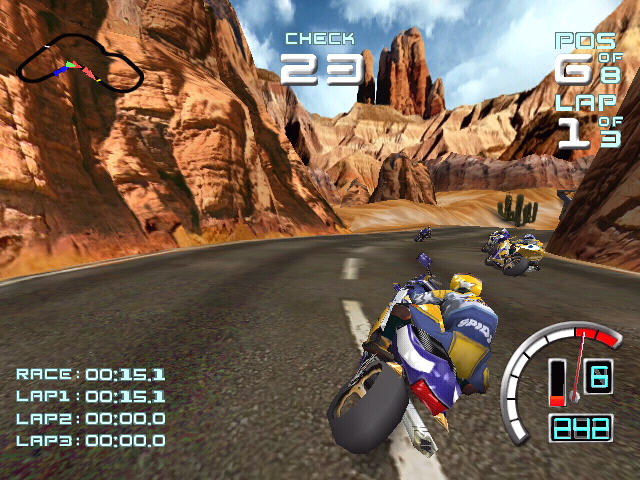 作为一款摩托车题材的游戏,这款游戏的仿真度比较高,在游戏中玩家将成为摩托车车手参加各种车赛争夺冠军。除了与电脑竞速之外,这款游戏还加入了双人同屏对战玩法,你可以与你的朋友在一台电脑上进行摩托车竞赛。