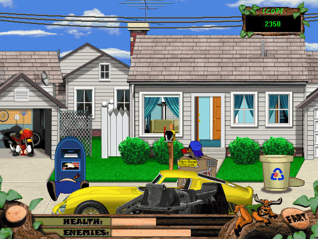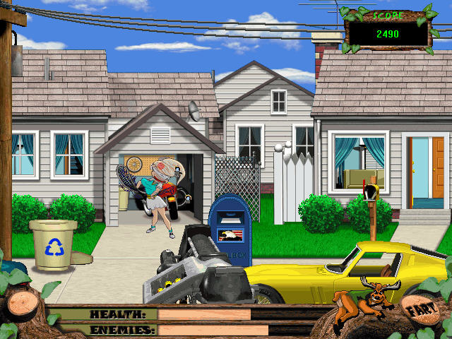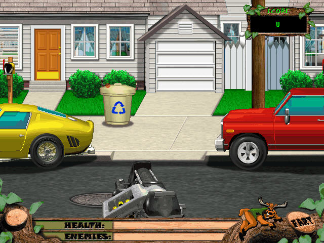 作为复仇的鹿,你将会从三把武器中选择一把枪开着跑车进入人类社区击败那些讨厌的敌人。游戏中存在血条的设定,你需要在自己血条被打完以前提前击败你的敌人,打光它的血条。需要注意的是,人类不会坐以待毙,也会拿起枪反击。你既要攻击它们,同时要防备从各种隐蔽角落发出的子弹!