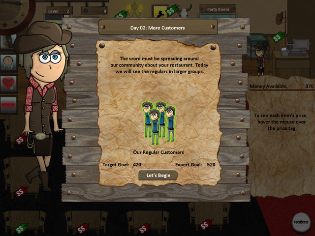 这款餐厅的模拟游戏就像它的名字一样朴素,游戏中的经典西部牛仔风格以及简单的界面设计,都给人的感觉这是一个简单而又朴素的乡村餐厅,没有华丽的装饰,只有一份安静。