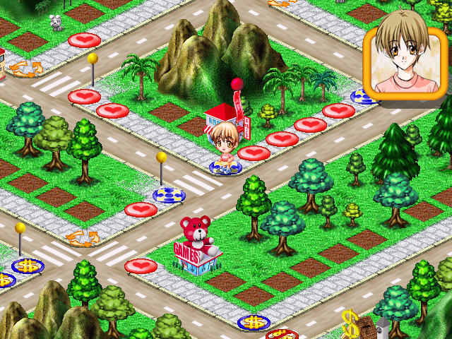 这款游戏的玩法比较类似大富翁,为了追求小葵、小纯、瞳瞳三位女孩子,主角需要以大富翁的玩法积累尽可能多的资产,同时多学习恋爱课程,才能够在竞争中取胜。需要注意的是,这款游戏中作为男主角的你只能够追求一位女孩子,当你选定之后就会对应一张地图,你需要在这张地图中与你的竞争者挑战才能够有机会获得美女的芳心。