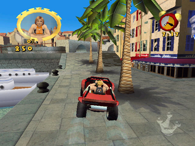 这款游戏中你需要在规定的时间内开车你的赛车触碰不同的道具、或者完成各种特技动作来获得尽可能的高分。游戏一开始运行玩家从三个人物中选择一个作为自己的角色,还能够选择一名美女助手。本游戏氛围普通模式以及高分模式,后者更适合熟练的玩家。