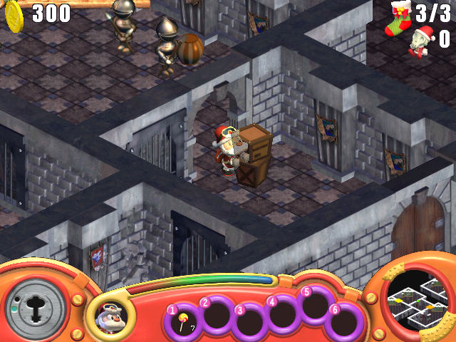这款游戏画面看起来非常像大富翁是卡通风格的,游戏操作比较简单,你需要做的就是利用不同的道具,引诱敌人,隐藏自己,将圣诞礼物送到指定的地方。游戏的地图场景比较像是走迷宫,游戏的怪物看起来比较呆板,但是没关系,这都不妨碍你体验一款轻松趣味的动作冒险游戏。