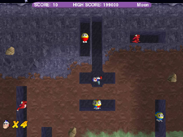 这款街机风格的动作游戏中,玩家要在不同的地图上用钻头来杀死每一个怪物,来赢得进入下一个关卡的机会。