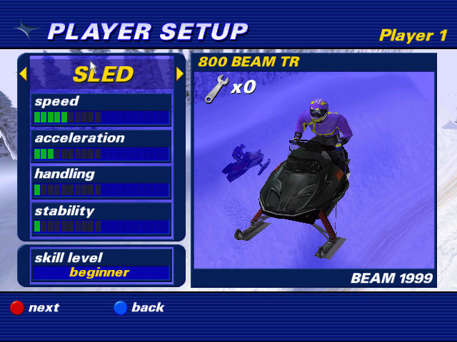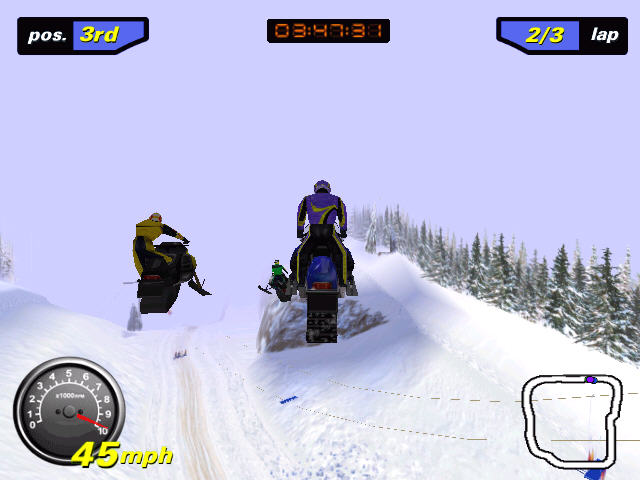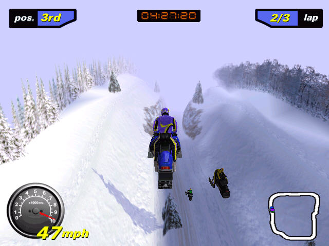 非常爽快的雪橇车滑雪大赛,玩家只需要选择自己喜欢的雪橇车以及赛道,然后与其他三位选手一起为了争夺第一名即可。不用的雪橇车有着完全不同的性能,是需要速度,还是需要力量,玩家将会做出一个艰难的决定。