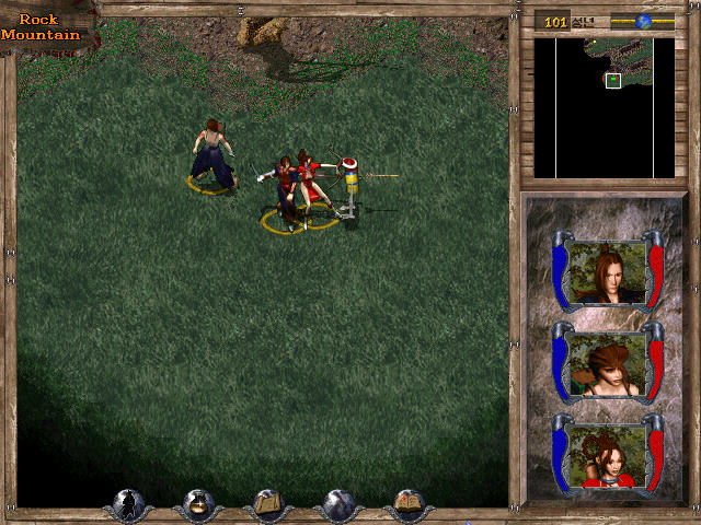 游戏中三个角色都可以学习魔法,地图上的怪是打不完的,玩家需要封印妖气点才能够使得该点不刷怪。人物的血槽和蓝槽是都反转尖椒型,比较有特点。另外值得说明的是这款游戏中装备修理费奇高无比,以至于后面能用好的装备也用不不起,这是玩家需要注意的。
