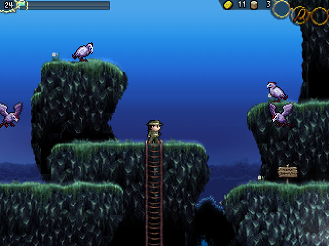 这款小巧的横版冒险游戏沿用的故事依然是老套的冒险故事,未知的神秘之地,各种危险的生物以及潜在的陷阱等,玩家在游戏中收集的金币可以让玩家拥有更好的装备来应付遇到的所有突发事件。