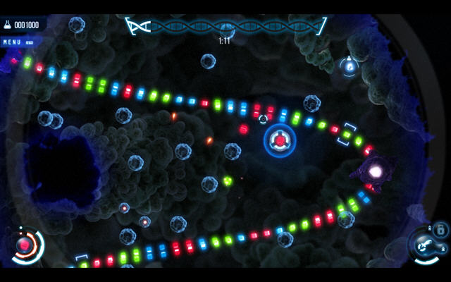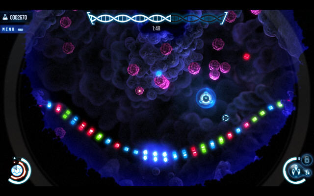 这款风格独特的游戏,将飞行射击和经典的休闲游戏祖玛结合到了一起,虽然是有关基因的高科技,但是玩法却依然还是经典的祖玛玩法。