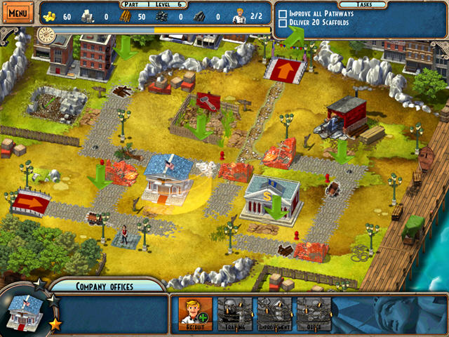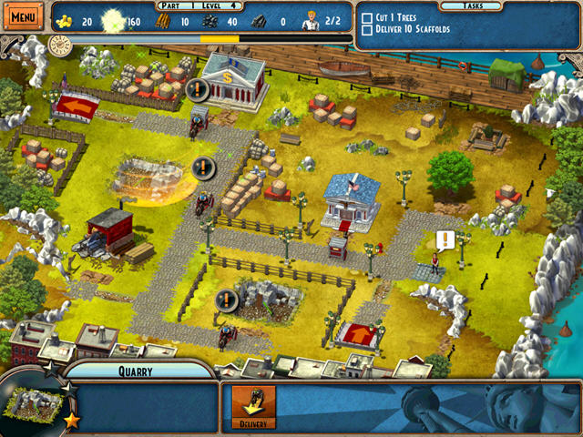 游戏依然是很经典的模拟经营类,通过收集和修复道路上的障碍物,然后建造对应的建筑来达成任务目标。超多的任务关卡以及诸多奖杯奖励,鼓励着玩家在最短的时间内完成任务。