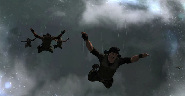 游戏中的场景非常丰富,从沙漠到雨林,充满着异国情调。敢死队的鹰和骷髅头标志,也将出现在游戏中,还有那一架简单粗暴,而又武器配备相当齐全的直升机,也将成为玩家的攻击武器之一。