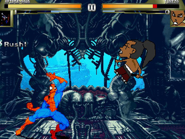 乱舞格斗中出现了非常多其他游戏中的角色,各种你意想不到的角色将会出现在你的眼前。不仅仅是街霸月华剑士这样的经典格斗游戏中的人物,甚至连皮卡丘,泡泡龙都要来参一脚。