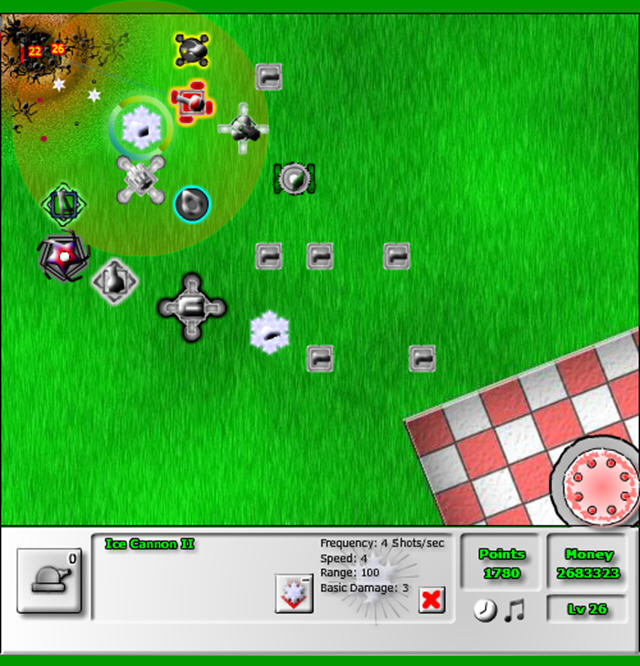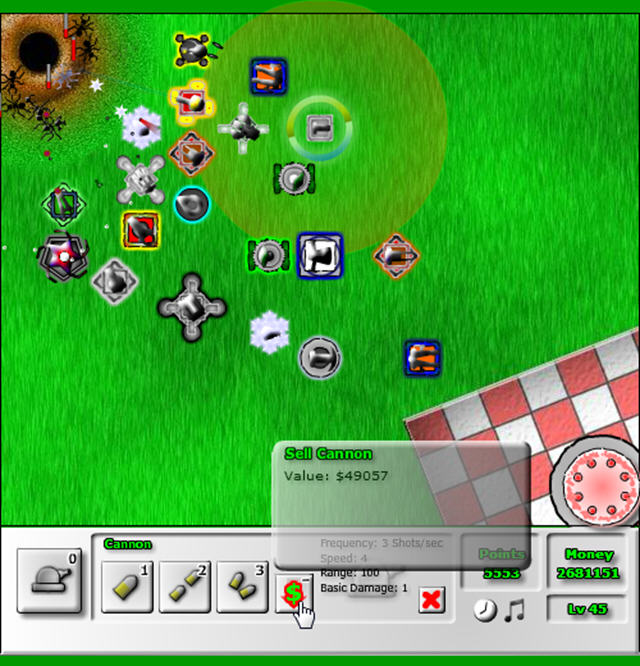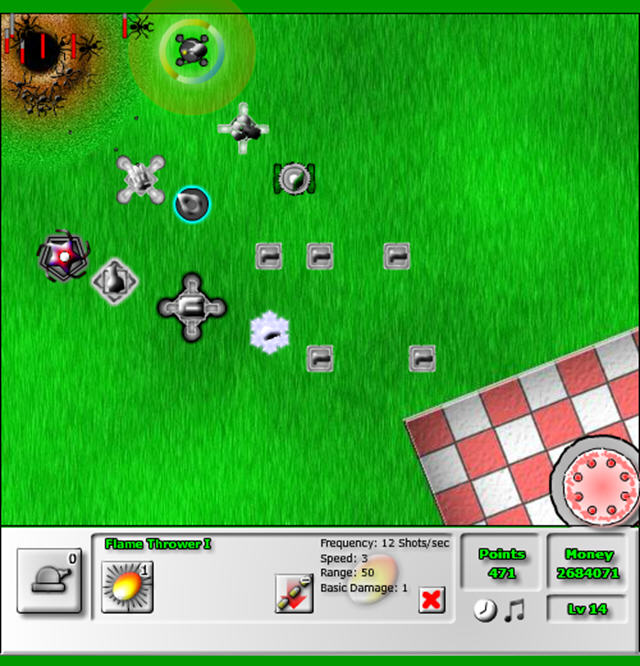 无敌版中玩家初始的金钱数量非常多,你可以把遍地都摆满塔,然后升级成各种各样的类型。防守完全没压力,所以剩下的乐趣就只有堵蚂蚁的门口或者用塔来摆各种各样的造型了……