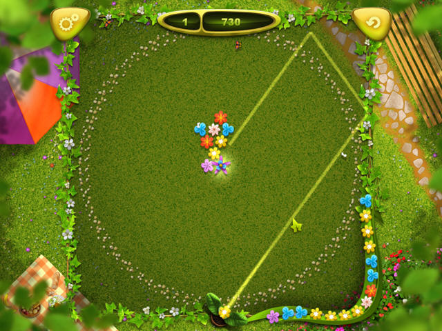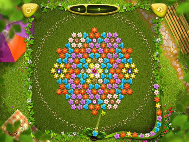 综合了泡泡龙的经典消除模式,又额外加入了很多丰富的道具,你还将会看到类似桌球一样的瞄准线,告诉你花瓣将会落在什么什么位置。另外记得不要被游戏中排成圆圈的石子给诱导了,弹射的位置是最外围的正方形。