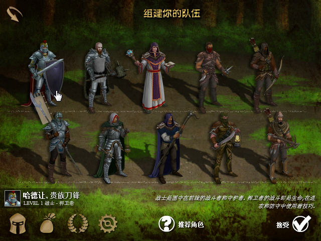 游戏一开始会要求玩家组建一个自己的四人队伍,鼠标放在人物上右下角会出现人物的相关介绍,亘古不变的战法道组合永远是最合适的。有些人物虽然名字听起来不像是个奶妈,但是还是请多多看一下游戏介绍,因为弓箭手在这个游戏中所扮演的角色也有可能是个奶妈的角色。