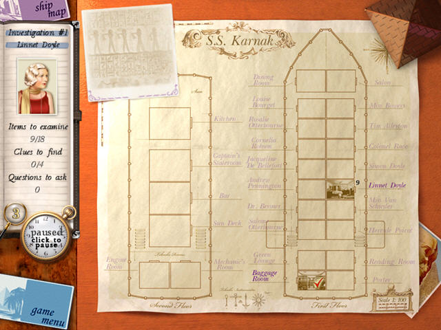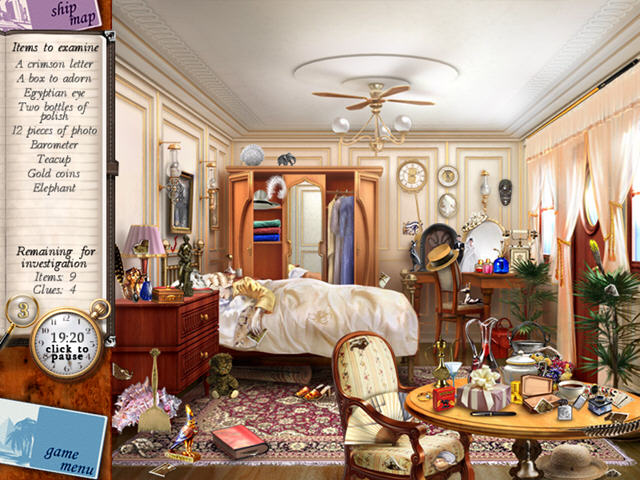 游戏中玩家将会在船舱中进行调查,仔细的通过找物来发现一些额外的线索,让真相水落石出,将穷凶恶极的凶手绳之以法。
