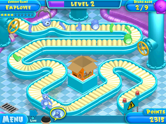 玩家熊工厂的任务很简单,你只需要将泰迪熊的各个部件拼成一个完整的泰迪熊即可。传送带上会不断的出现不同颜色的泰迪熊零件,必须要将同一色的零件组合在一起才行。