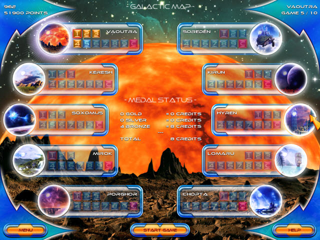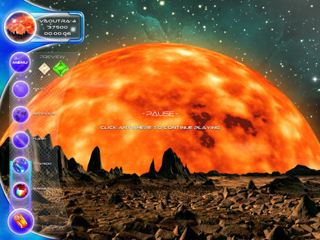 这款很类似与泡泡龙的游戏,采用了科幻的太空题材,消除的泡泡也变成了亮晶晶的各色宝石。游戏可供挑战的关卡非常之多,不同的关卡有着完全不同风格的科幻背景,有的背景做的相当精致。
