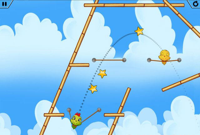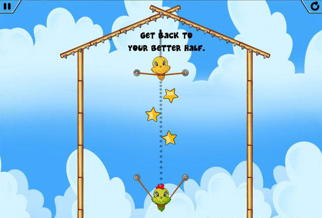 类似于愤怒的小鸟的休闲游戏,玩家这次面对不是在那些可恶的偷蛋猪,而是要将可爱的小鸟送向幸福的彼岸,通过不断的跳跃,最后到达另一半的旁边。