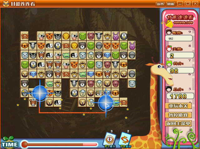 《甘蔗宠物连连看》是一款很不错的连连看单机版游戏,游戏的难度会随着玩家挑战关卡的增多而加大,同时玩家还可以存档,等待着下次再来继续挑战未完成的关卡。
