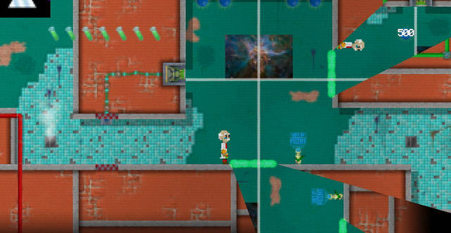 复古风格的冒险游戏,游戏中有多种道具提供给玩家,不同的道具有着不同的用处,有时候你还得像玩传送门一样来改变地形让自己通过。
