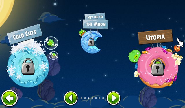 此外,新游戏里还有BOSS,就像里约版一样。比如,在一些章节的最后,就会有猪太空国王(Space King),这个膨胀的猪开着一个有很多致命机械抓取臂的”飞碟“。而且,即使是普通猪也变得更具挑战性了。比如说巨肥猪(Fat Pig),其直径为国王猪的两倍,可想而知,它比胡子猪要更难打许多。