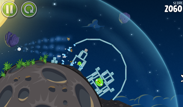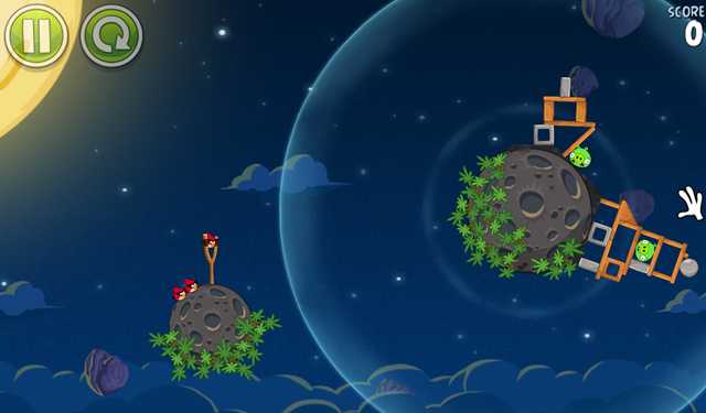 在新版的游戏中,物理特性将会有所不同——射出的小鸟在没有重力影响的时候,轨迹是完全直线的;而一旦有小行星等重力吸引,小鸟的轨迹就会相应发生变化,想要在《Angry Birds Space》中过关斩将的话,就必须要掌握好这一简单的原则。