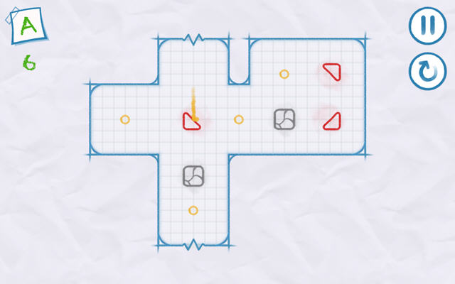 《Ichi》是一款相当简单的益智小游戏,玩家控制着几块三角形挡板,来改变线条的运动方向。游戏的目的就是保证不让移动的线条碰到弯曲的边界的情况下,引导着移动的线条吃掉所有的黄色圆球。不要被简单的画面欺骗,你很可能会喜欢上它。