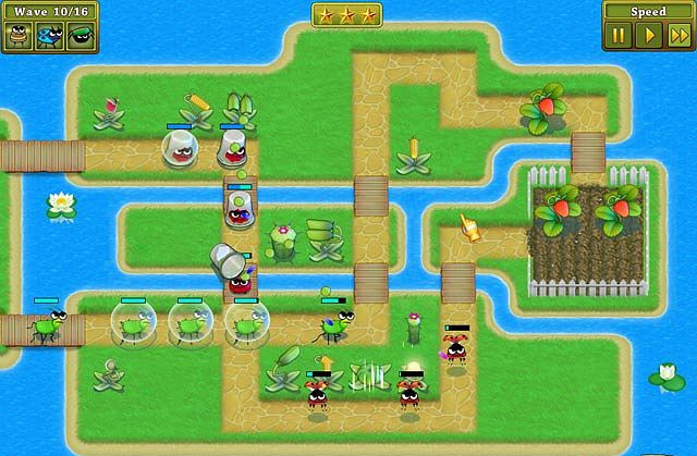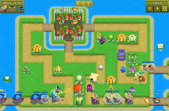 画面清新,造型有爱的塔防游戏,漂亮的花朵总是会被很多害虫嫉妒,为了保护好你精心培养的花园不受侵害,你得早点送这些害虫去再投一次胎。