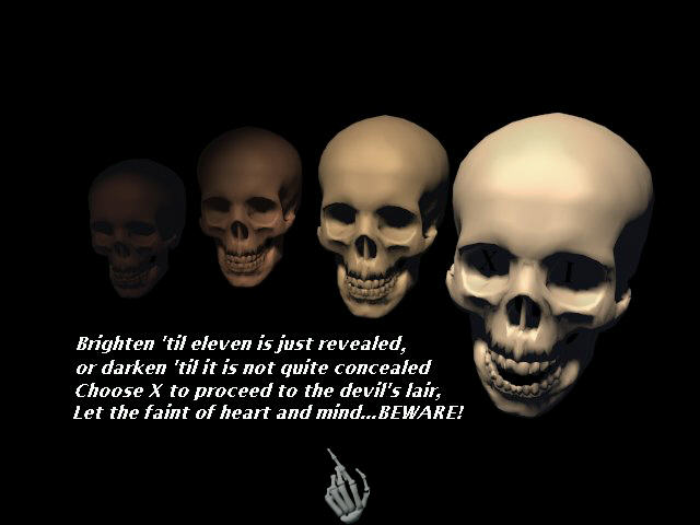 在内容方面除了真人拍摄的电影部份,它还有一段卡通动画的介绍,很有意思!而最令人感动的是,制作小组有心的将这游戏的制作过程区分成电影拍摄、谜题设计等部分,全收录在一片光碟中,内容相当的丰富。还有一个惊喜是给DOOM迷的,在光碟中所附的WAD档中,有DOOM、DOOM2和Heretic的WAD档,场景就是取自这游戏的大屋,让玩家有机会在鬼屋中大开杀戒!