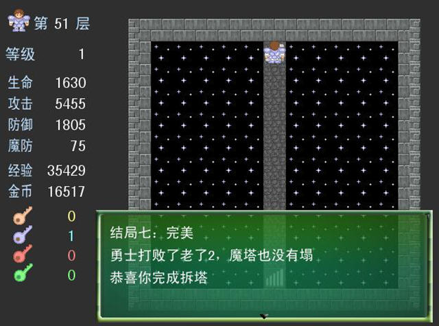 以魔塔为基础所制作的同类游戏,游戏中加入了多达8种结局,所以在一定程度上满足了众多玩家喜欢反复来玩的心态,同时游戏的难度比普通的魔塔要高很多,建议玩家在面对游戏中存在多种选择时慎重考虑。